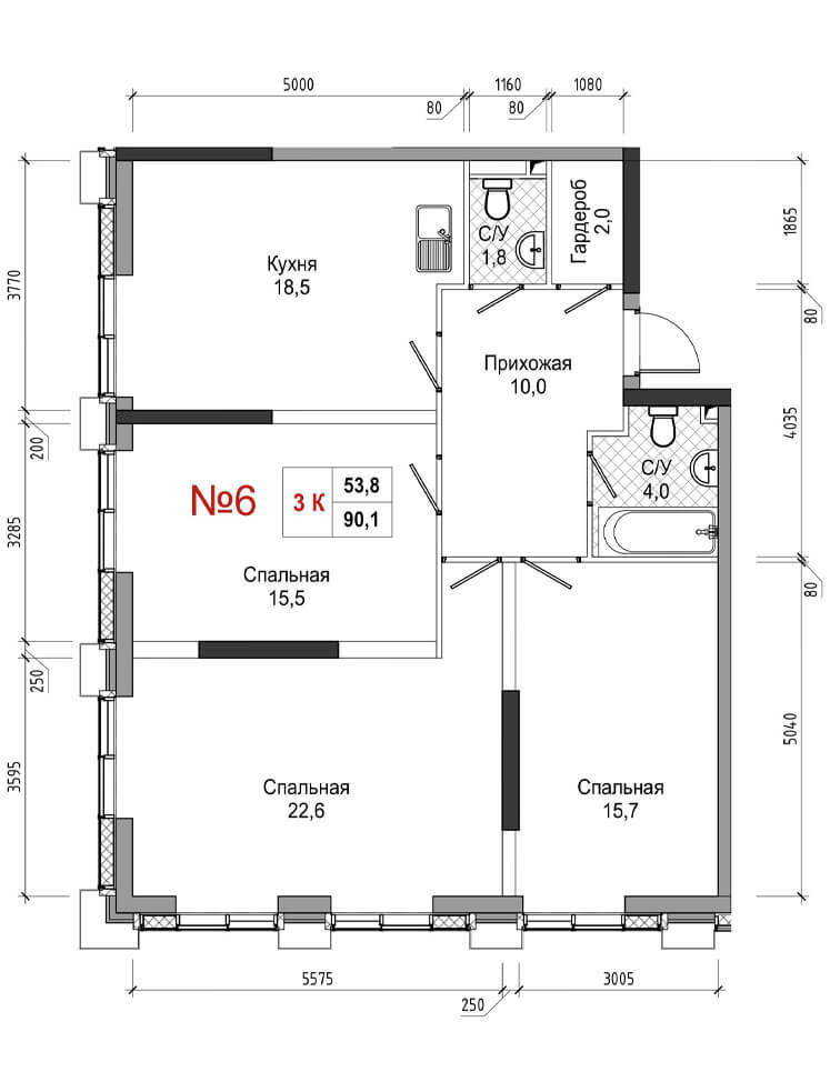 • площадь: 90.1 м2