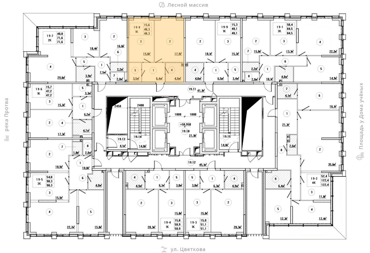 на этаже: 19