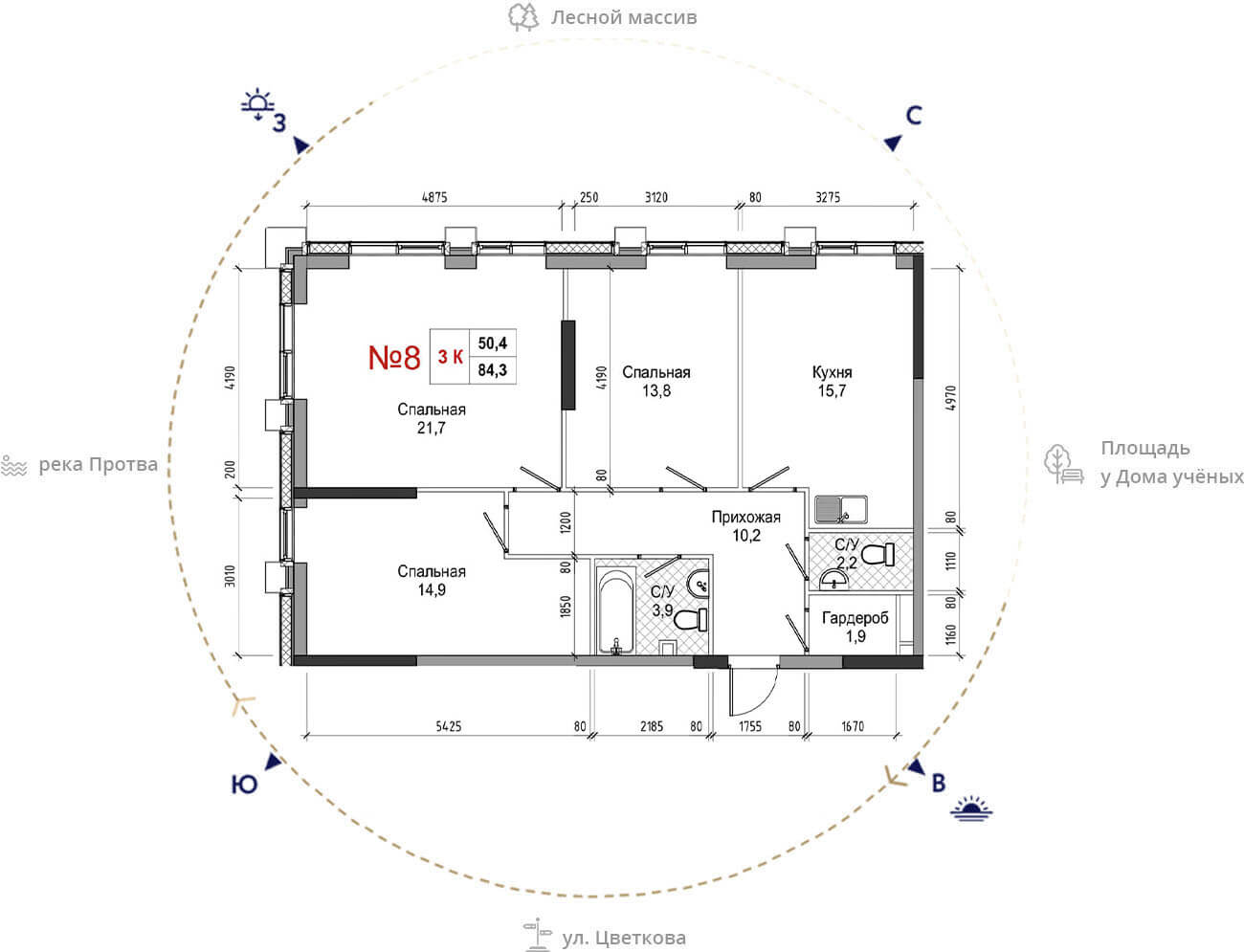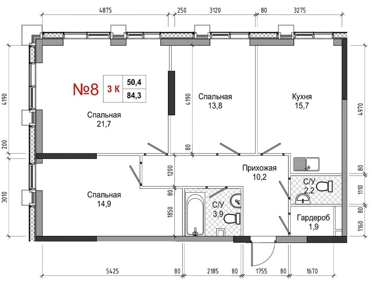 • площадь: 84.3 м2