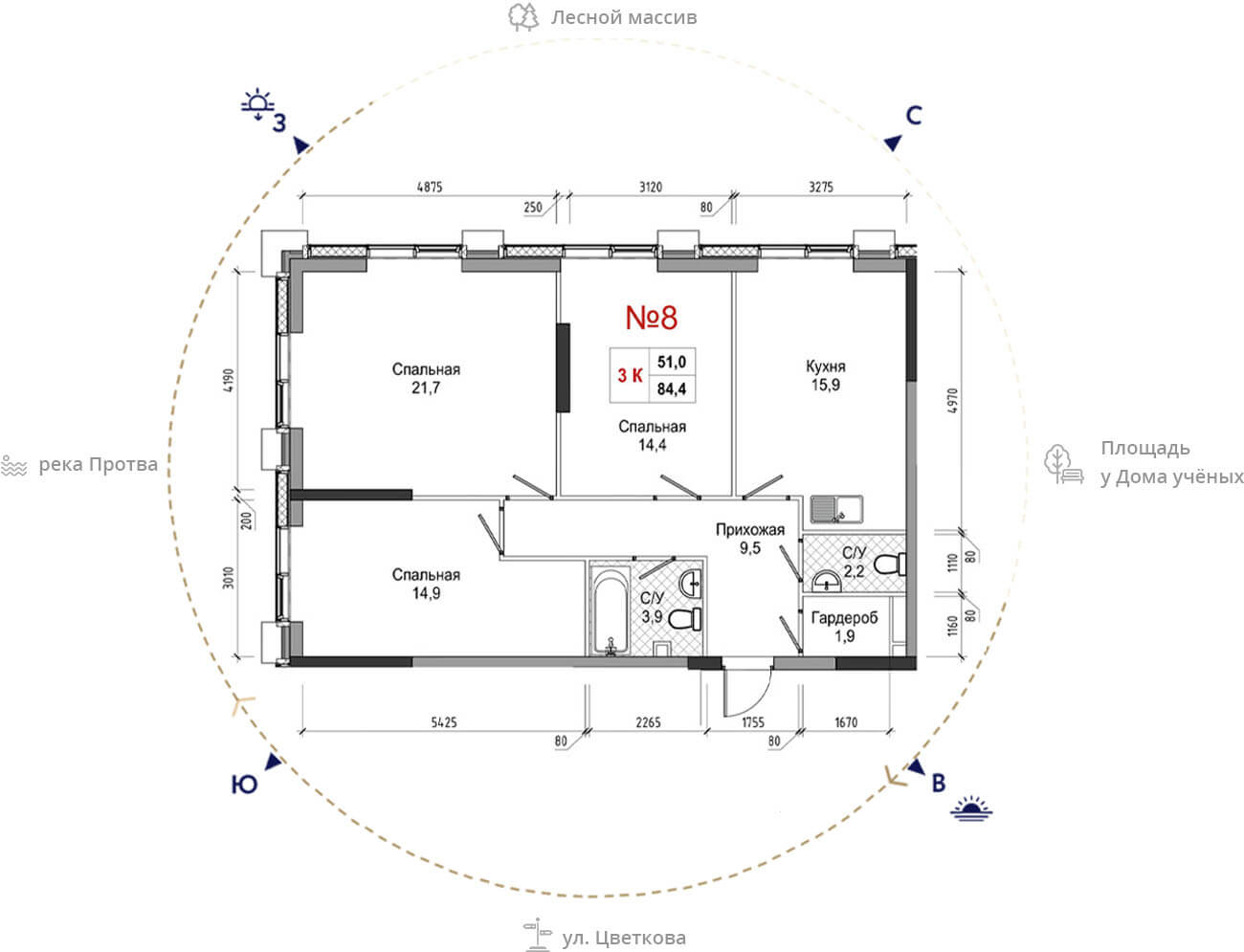 • площадь: 84.4 м2